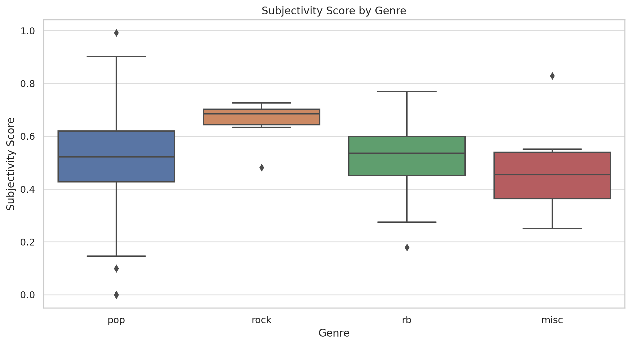 - Genre Analysis: Explore if the sentiment and subjectivity vary significantly across different genres (e.g., pop, rock).