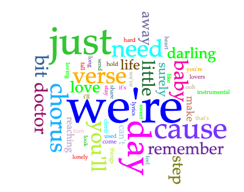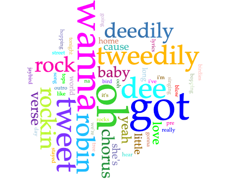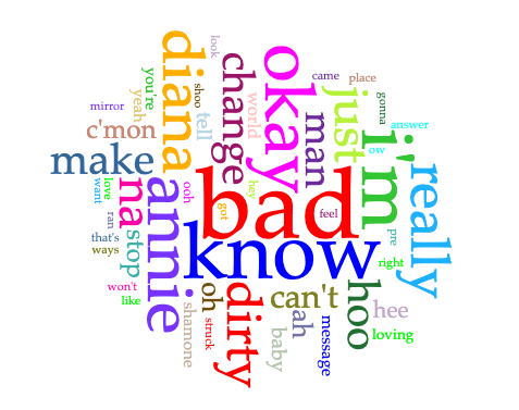Voyant word bubble for the most popular words in Michael Jackson's songs that were on the Billboard Hot 100 list.