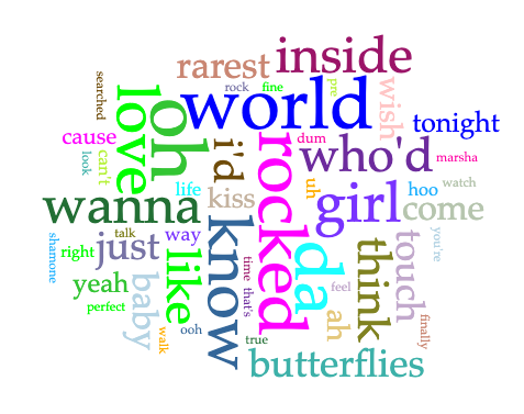 Here, "girl," "love," "world," and "butterflies" are quite visible. "Girl" and "love" suggest songs focused on romantic relationships, which is consistent with the more personal and introspective nature of some tracks on "Invincible." The word "butterflies" references the light, fluttering feeling of new love and also directly relates to the song "Butterflies." The use of "world" could indicate a continued theme of universal concepts and connections beyond the personal scope.