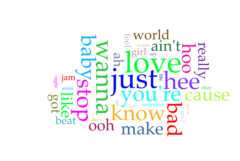 Using Voyant, we first looked at 41 MJ songs that were on the Billboard 100 list at any point in time; these serve as his most popular songs. From this tool, we can see what his most commonly used words are and where they are used the most. "Just,' "love," "wanna," "stop," and "hee" are his most used words throughout his most popular songs.