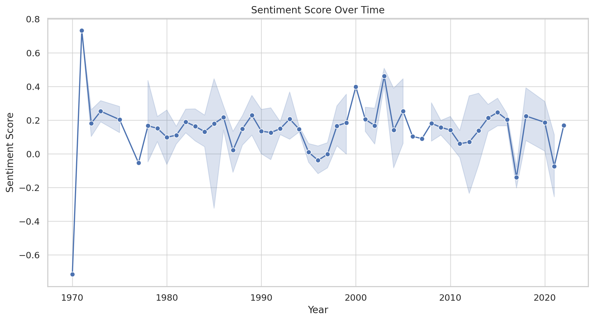 - Sentiment Over Time: Analyze the trend of sentiment scores over the years to see if there's a shift in the emotional tone of the songs.